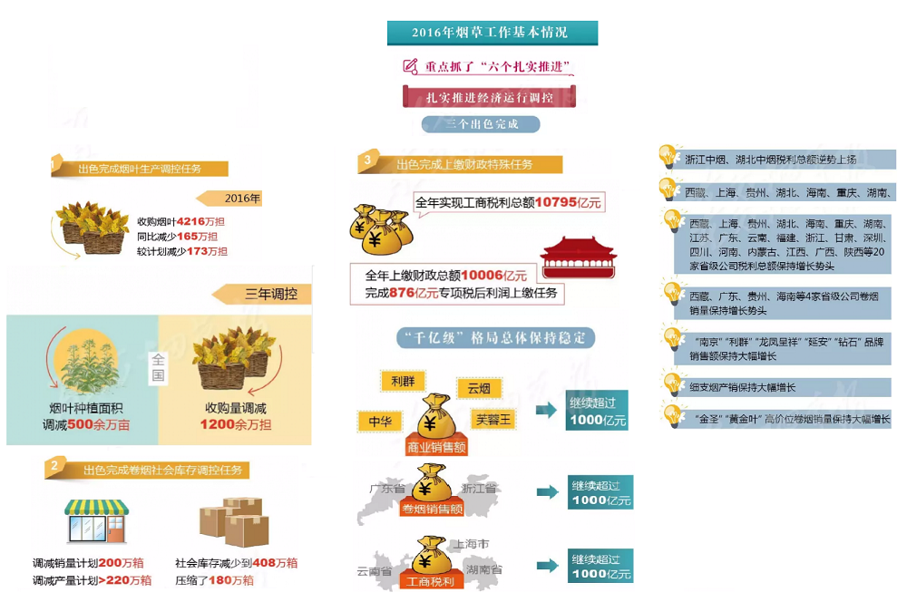2017年全國煙草工作會議在北京召開,國家局局長凌成興在會上作了題為《堅持穩(wěn)中求進總基調(diào) 爭創(chuàng)穩(wěn)中向好新作為以“兩個超萬億”優(yōu)異成績迎接黨的十九大勝利召開》的報告。